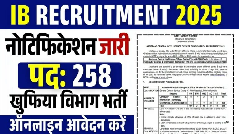 इंटेलिजेंस ब्यूरो ने युवाओं के लिए नई भर्ती का नोटिफिकेशन जारी किया है। इस विभाग द्वारा 258 पदों पर भर्ती …