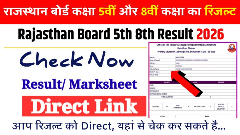 Rajasthan Board 8th Class Result 2026 : इस वक्त की बड़ी खबर राजस्थान बोर्ड द्वारा 8वीं कक्षा का परिणाम 24 …