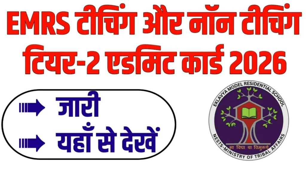 EMRS Teaching & Non-Teaching Tier-ll Admit Card Out : इस वक्त की बड़ी खबर EMRS टीचिंग और नॉन टीचिंग पोस्ट के एडमिट कार्ड जारी कर दिये गए हैं आप सभी को पता है कि इस भर्ती के लिए टियर 1 की परीक्षाओं का आयोजन 13 दिसंबर, 14 दिसंबर और 21 दिसंबर 2025 को किया गया था। परीक्षा समाप्ति के बाद विभाग द्वारा इसका रिजल्ट 31 जनवरी 2026 को जारी कर दिया। इसके बाद टियर 2 के एडमिट कार्ड विभाग ने जारी कर दिये हैं।