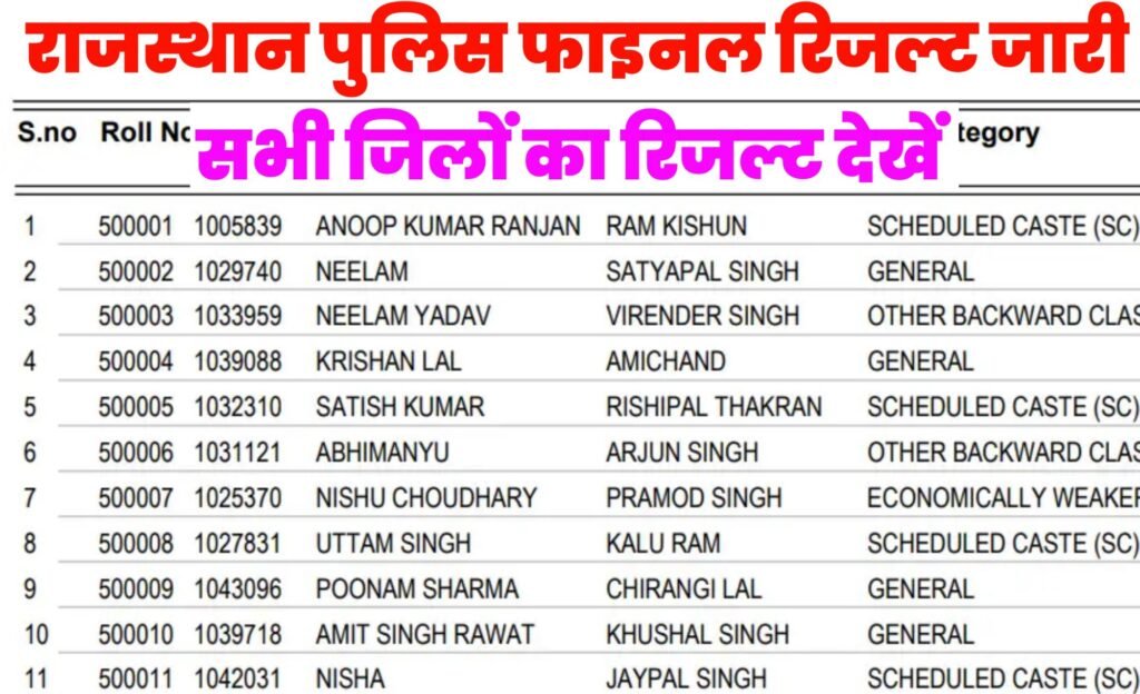 Rajasthan Police Constable Final Result 2025 Important Links 🔗